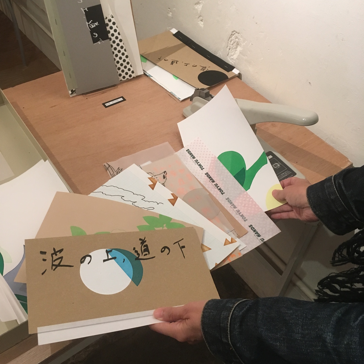 ミヤギさんの「波の上、道の下」を読んでから冊子を作りはじめる方、読まずに直感でプリントを選んでいく方、一枚一枚慎重に選び、ミヤギさんの文章を読みつつ、確認するように作っていかれる方。人によって一冊の作り方は様々で、自分だけの一冊が出来上がっていきます。